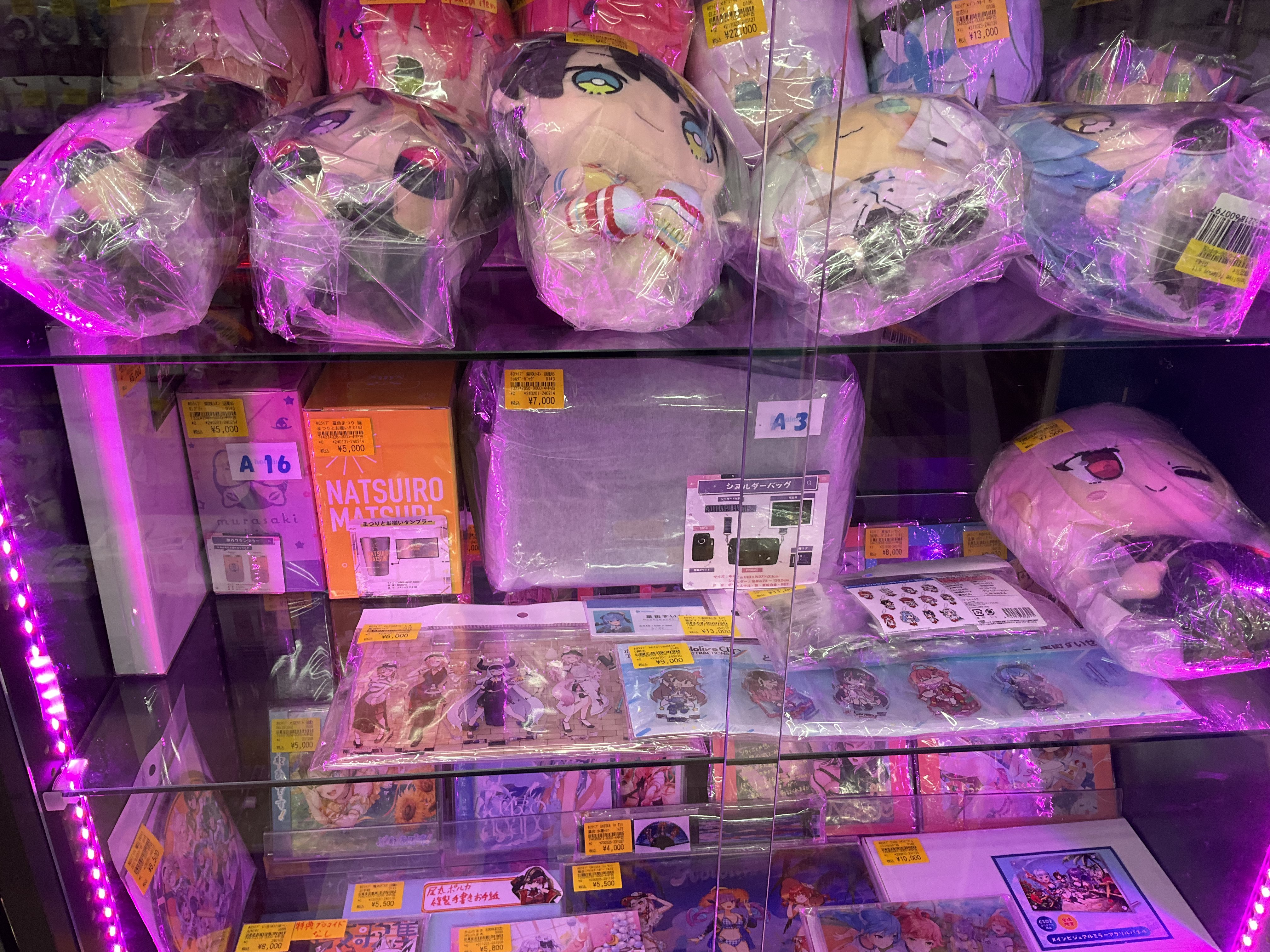 - Mulan Anime ma dwa sklepy, w obu można znaleźć bardzo dużo vtuberkowych rzeczy, jeden ma nawet całe piętro podpisane Virtual youtubers. Ceny spore, to w końcu outlet, ale jak przy wejściu wita nas koncert na graduacje Coco, a w środku leci zeszłoroczny medley, w którym Suisei i Miko śpiewają razem Stellar Stellar, to klękam i kupuje rzeczy.