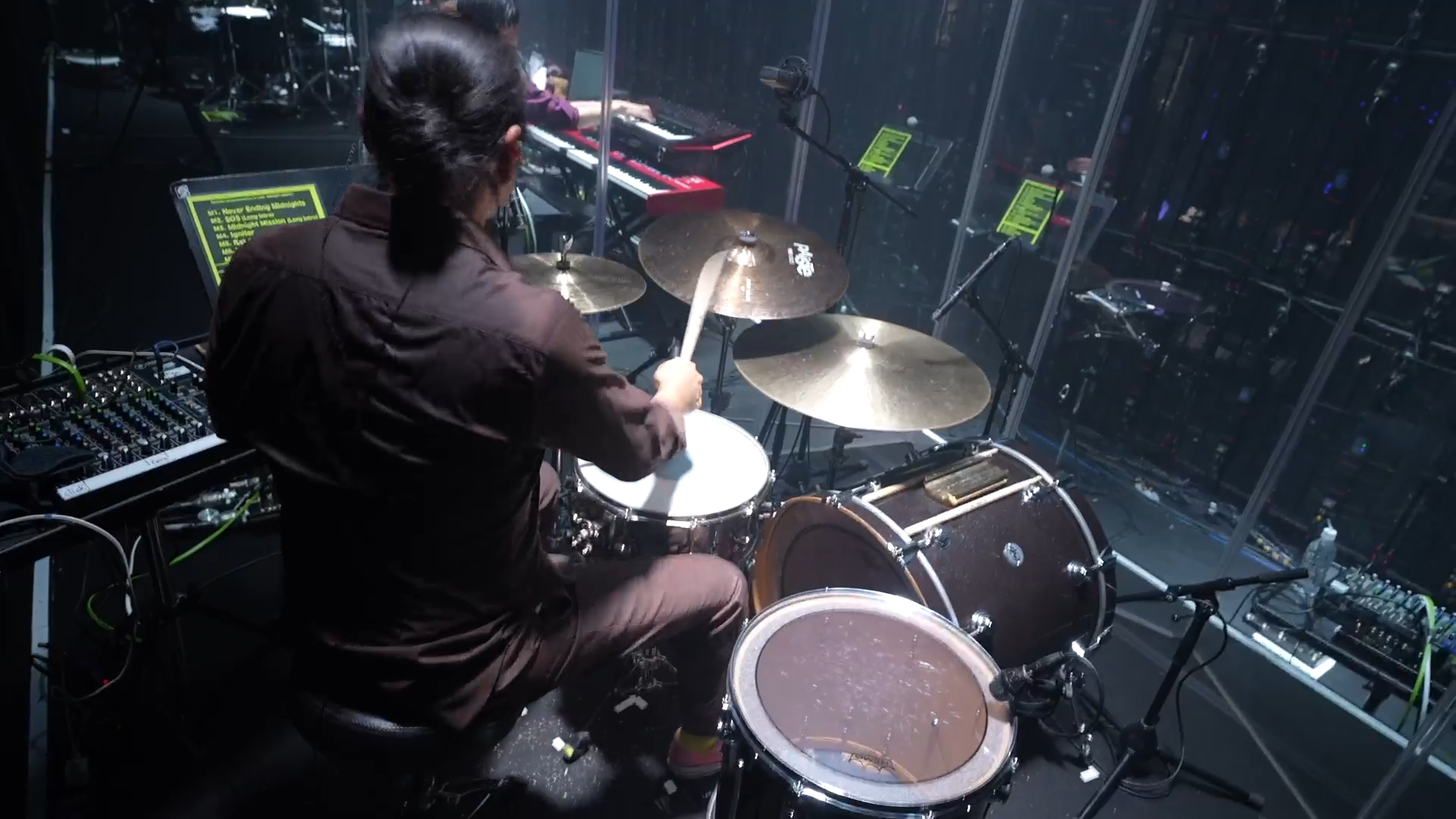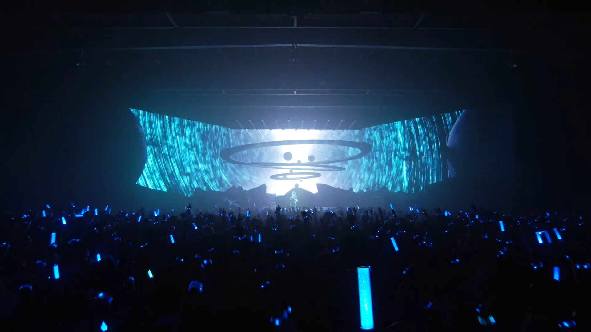 Koncert zaczął się tak samo jak zaczyna się Overture, pierwszy album Midogury. Od utwory Never Ending Midnights. Już od początku wizualnie kocnert zrobił na mnie niesamowite wrażenie. Na ekranach pojawił się napis "Starting the mission" i dosłownie zostaliśmy zabrani w podróż po kosmosie, ekrany wyświetlały coraz to inne informacje na temat statusu misji kosmicznej, mieniły się na niebiesko i czerwono, dodatkowo dym, lasery, światła. I publiczność, będąca tu z tą samą pasją co ja i z tym samym celem. Suisei została wyświetlona na hologramie, obok z gitarą stał Taku Inoue, a w klatce widocznych było pozostałych dziewięcioro muzyków.