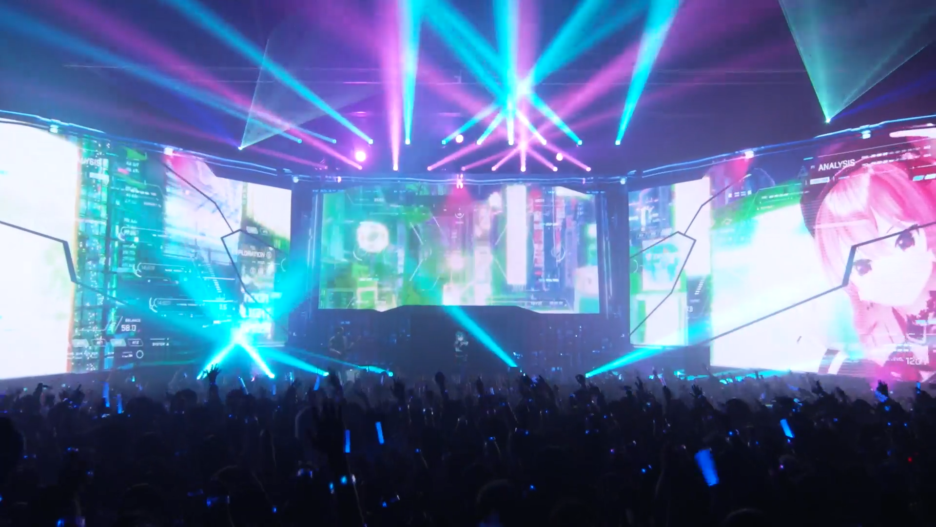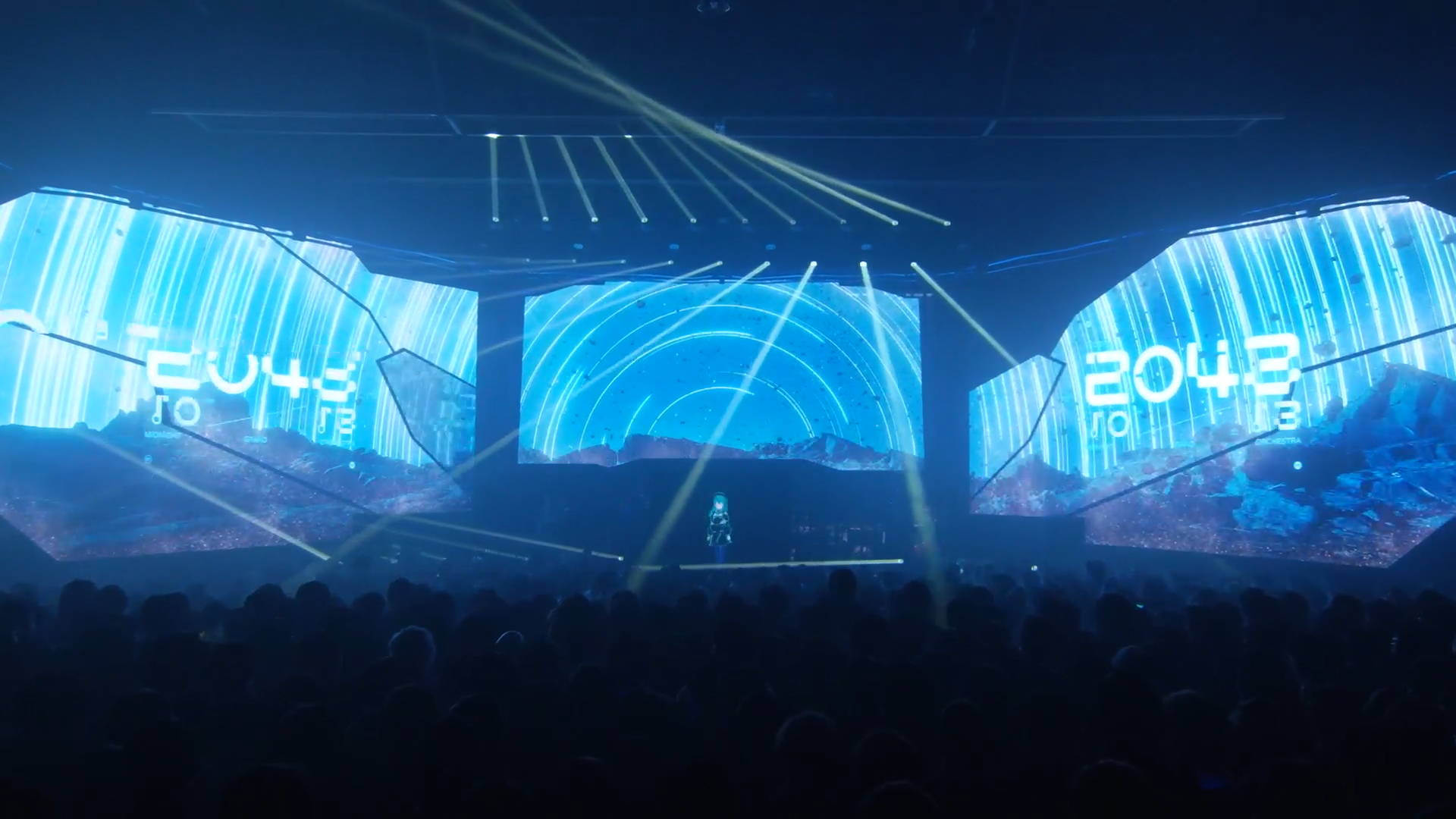 Jestem przekonany, że ułożenie utworów na tym koncercie też nie było przypadkowe. Pierwsze cztery to podróż kosmiczna do cyber miasta. W kolejnych trzech zdobywamy w mieście Allegro. Ryuseigun jest cały o oczekiwaniu, nostalgii i refleksji nad przemijalnością życia. Koncepty nieskończoności, oczekiwania i przemijalności pojawiają się w utworach Midnight Grand Orchestry cały czas. Soriroki to kolejny utwór, który opsiuje stuletnie oczekiwania i ulotność wspomnień. Light the Light, podczas którego dalej widnieje data 20.02.2124, mówi o zmianach w świecie po stu latach. Moonglighspeed mimo całego swojego optymizmu pokazuje, że nawet prędkość światła to za mało, by cofnąć czas. Dopiero podczas Allegro wystrzelenie z tytułowego karabinu ma otworzyć możliwości na nową przyszłość. Przez te cztery utwory cały czas towarzyszy nam postać, która pojawiła się na ekranie podczas Soriroki. To ona razem z Suisei strzela z Allegro i podróżuje z nami z prędkością światła.