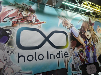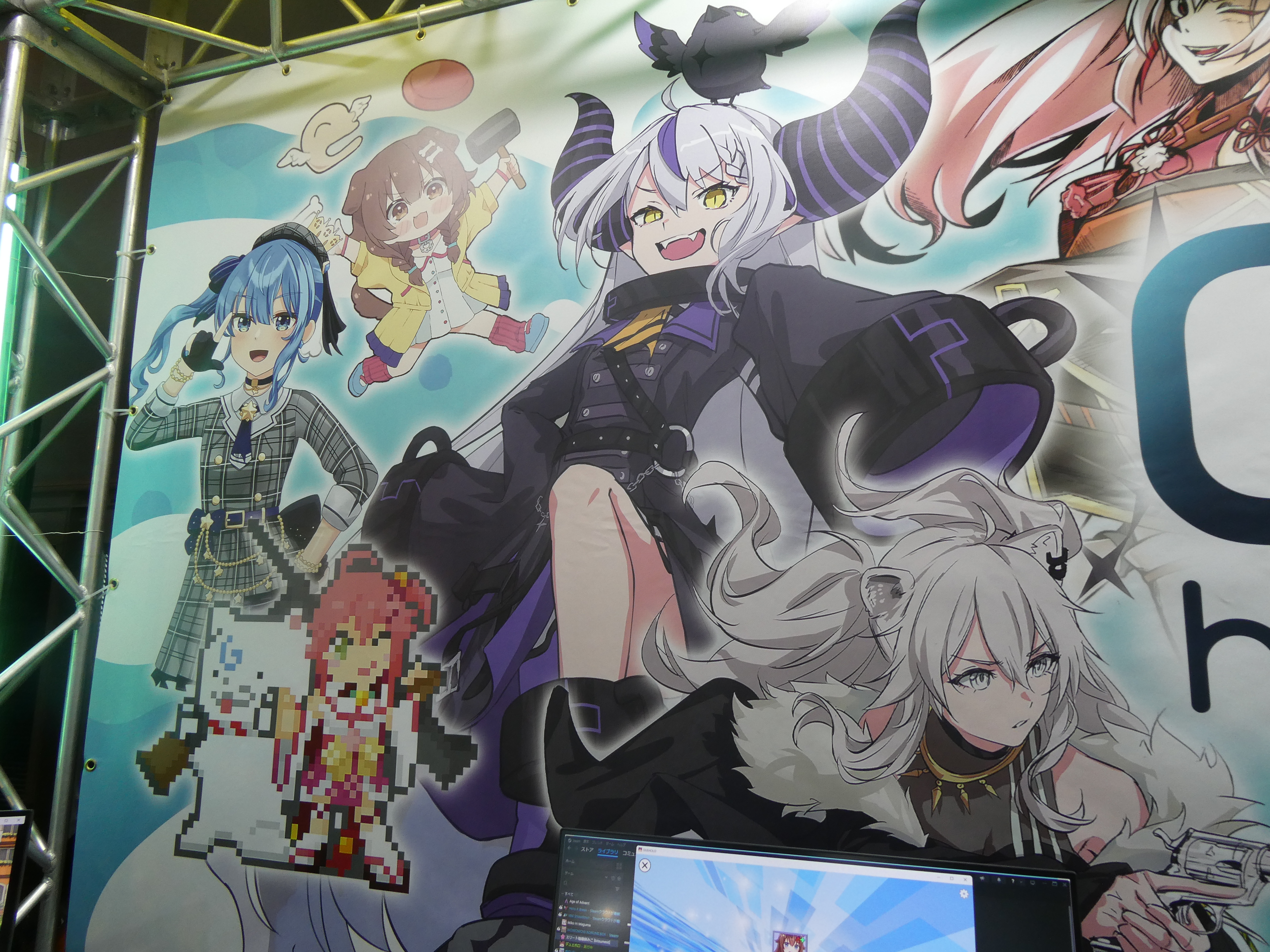 20 lipca w Kyoto trafiłem na Bitsummit, wydarzenie dla indie gamedeveloperów, gdzie mogli prezentować swoje gry. Nie spodziewałem się zobaczyć tam nic związanego z Suisei, a całkiem miło się zaskoczyłem, po pierwsze spotkałem tajwańskich developerów gry Naka no Hito Culprit, wśród których byli Hoshiyomi. Miło było dostać tajwańskiego cukierka. No, ale nie tworzyłbym gdyby całego podpunktu tutaj by tylko pokazać, że Hoshiyomi istnieją i są wszędzie. Na drugim piętrze hali, na której odbywało się Bitsummit znajdywały się nieco większe i bardziej komercyjne stoiska. Udało mi się np. zagrać w Hololive Treasure Mountain lub odwiedzić stoisko Hololive Indie i zagrać w dwie z wydanych w ramach tego programu gier. Udało się też dostać wizytówkę jednej z pracujących tam osób.