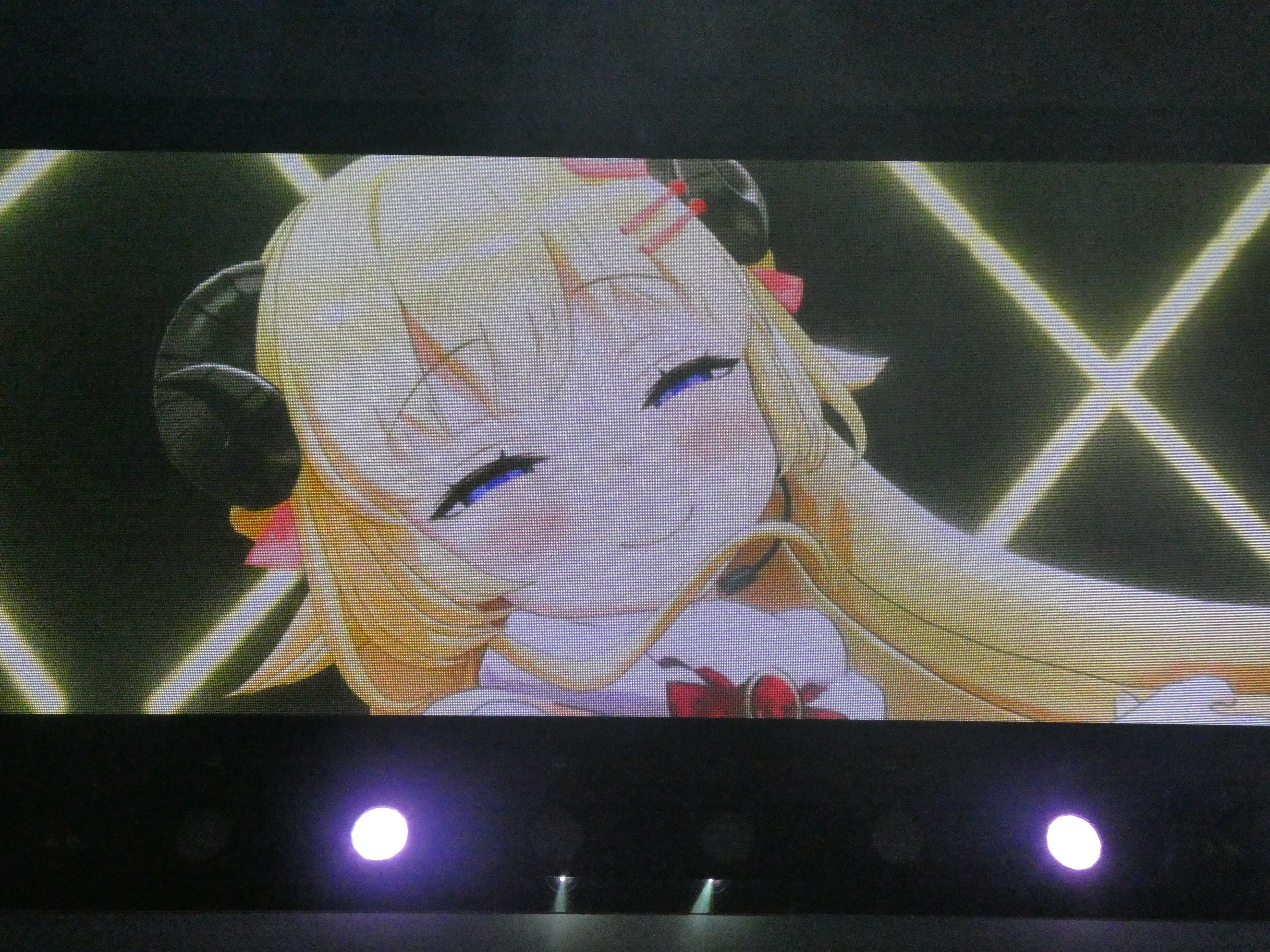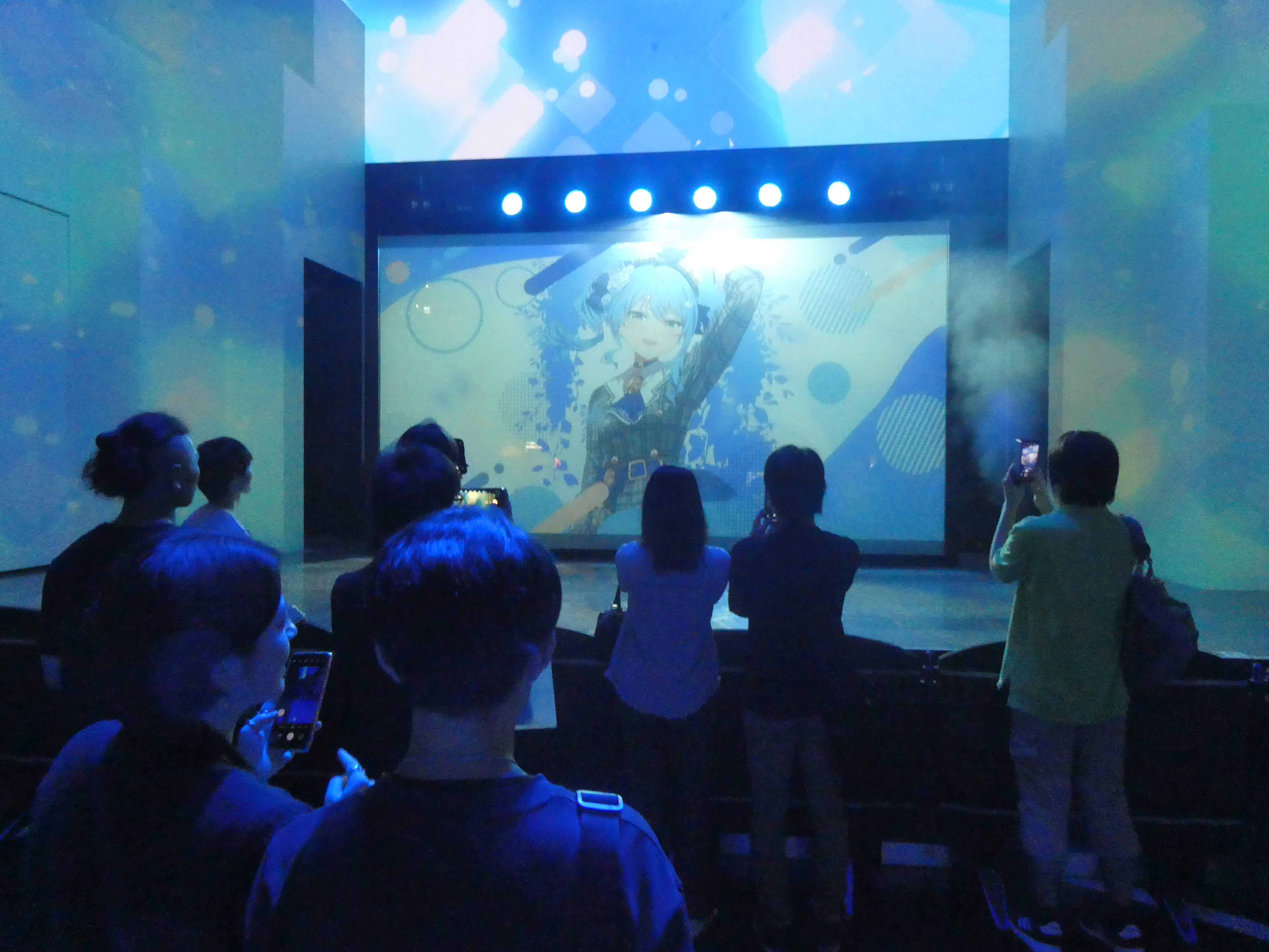 Na terenie całego Joypolis rozmieszczone były ekrany, do których jak podeszliśmy wymawiane były kwestie dialogowe i można było zrobić sobie zdjęcie z vtuberką.