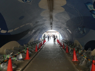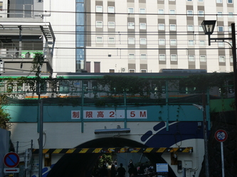 Podczas mojej pierwszej wizyty w tym tunelu był on w czasie odmalowywania. Jakbym przyjechał do Shibuyii tydzień wcześniej to możliwe, że udałoby mi się zobaczyć go tak jak wyglądał kiedyś. Obecnie wygląda tak jak na drugim zdjęciu. Samo zdjęcie robione było od strony słynnego shibuyskiego skrzyżowania. Z lekkim zoomem, na lekim wzniesieniu. Ten tunel pojawia się również w teaserze zapowiadającym hololive DEV_IS. Również przed remontem.