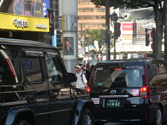 Skrzyżowanie kawałem za słynnym Scramble Crossing, na moim zdjęciu samochody niestety jadą w drugą stronę, ale to definitywnie to miejsce. By wykonać to zdjęcie trzeba ujstawić się pod schodami, wyjść lekko na ulicę, w miejsce gdzie parkują samochody i czekać na dobry moment. To samo miejsce, ale z innej perspektywy pojawia się na MV do utworu Ever Blue u Omaru Polki. Zdjęcie w Stellar Stellar robione było stojąc obok schodów widocznych w lewym dolnym rogu na MV Polki.