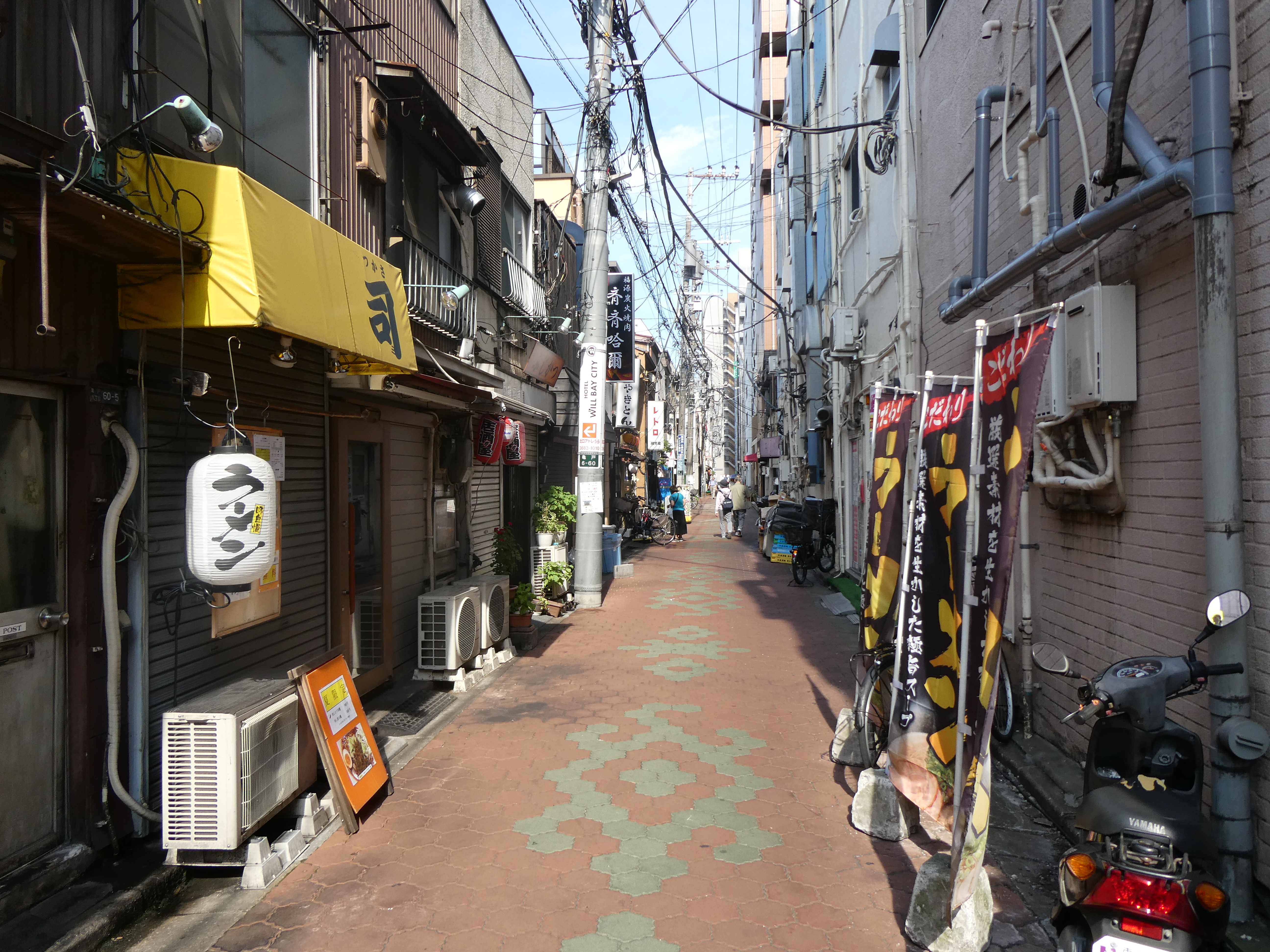Tak zwany Gempachi Bridge na jednej z odnóg rzeki Yodo. By wykonać to zdjęcie trzeba pójść bliżej końca mostu przy zachodnim wybrzeżu i ustawić się w kierunku południa. Moje zdjęcie zostało wykonane w dzień.