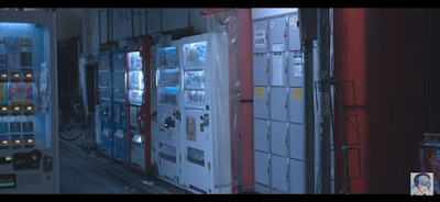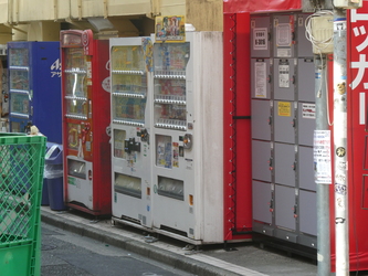 Automaty i coin locker za 200 jenów. Automat po lewej stronie już nie istnieje, więc zdjęcie nigdy nie będzie takie samo jak podczas kręcenia Stellar Stellar. Zdjęcie trzeba zrobić z drugiej strony ulicy, używając trochę zooma.