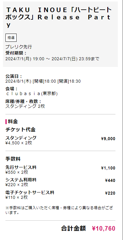 W tym miejscu zamieszczę też przykład zakupu biletu na platformie L-tike. Dla przykładem będzie Taku Inoue Release Party - Heartbeat. Zalecam oczywiście zapoznanie się z DeepL. Jak widać screeny robione są z telefonu. Jeżeli loteria ma mieć bilety przekazywane na L-tike na telefonie to zapisać się na loteirę będzie można tylko z urządzenia mobilnego typu smartfon. Nawet mój iPad nie działa.