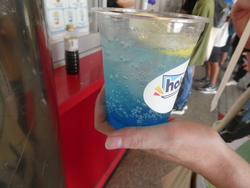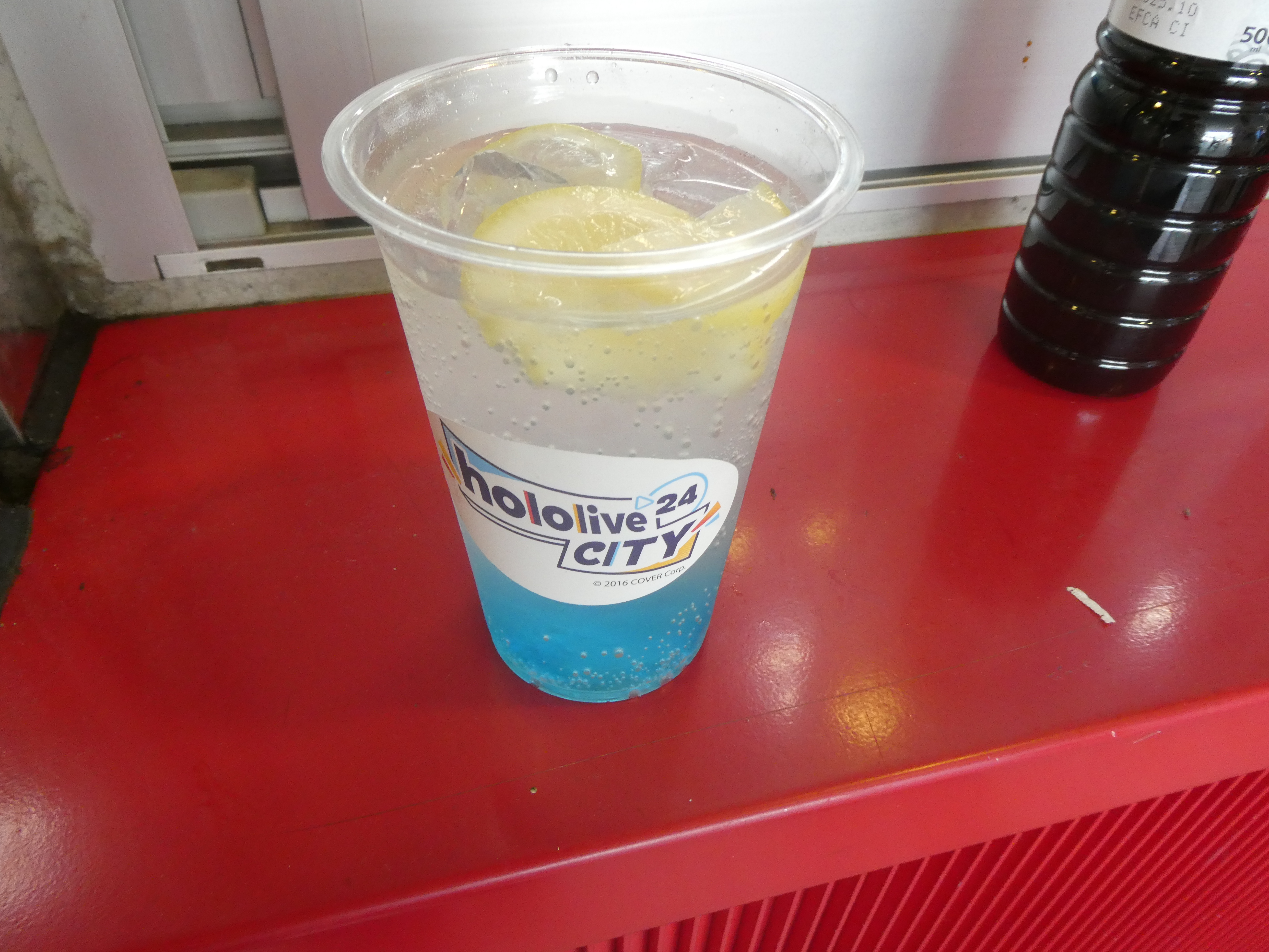 Na terenie obiekty była kafelka z tematycznym jedzeniem. Zamówiłem Suisei napój i Suisei churros. Jedzenie smakowało dokładnie tak jak sobie wyobrażałem, churros był słodki i barwił na niebiesko, a smak Suisei napojów najwidodoczniej jest lekko kwaśny. Do każdego zamówione produktu dostawało się losowego coastera. Właściwie od razu dostałem Suisei, więc nie musiałem już zamawiać kolejnych churrosów.