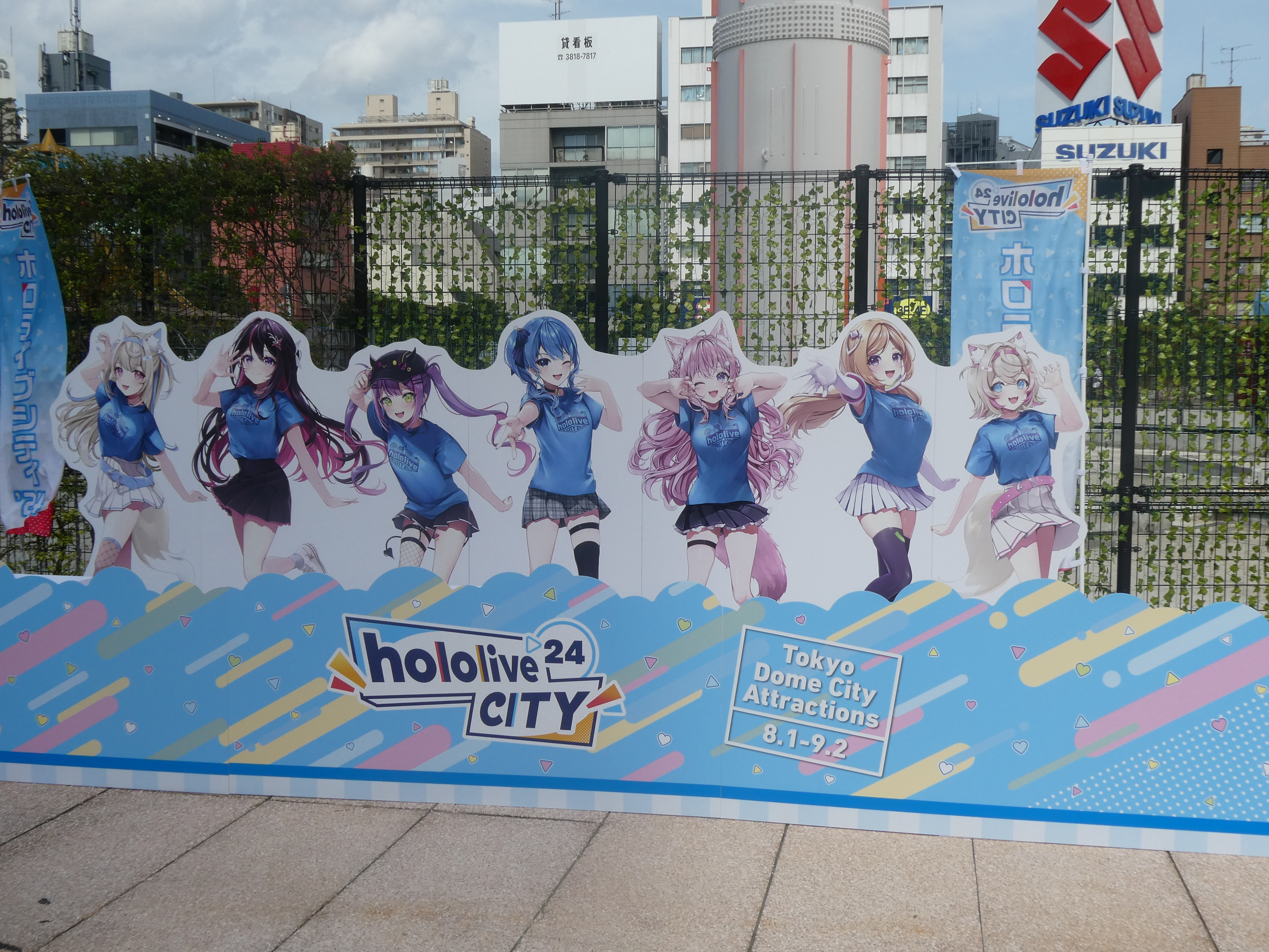 Na tym evencie akurat nie byłem, bo zakończył się dwa dni przed moim przyjazdem, czyli 15.07.2024. Tylko o nim wspomnę. Rusza nowa kolekcja mody sygnowana postaciami z Hololive, w pierwszym rzucie reklamowały ją Miko, Suisei, Iroha i Aki. Wyglądało to mniej więcej tak: Mi niestety nie udało się udać, ale w internecie można znaleźć sporo zdjęć jak wyglądała kolaboracja. Mercz też byłdo zakupu online, więc specjalnie mi nie zależało. Szkoda tylko, że nie mogłem zobaczyć kolabowych kartonów. I podpisów, bo z tego co mi wiadomo to też były na miejscu.