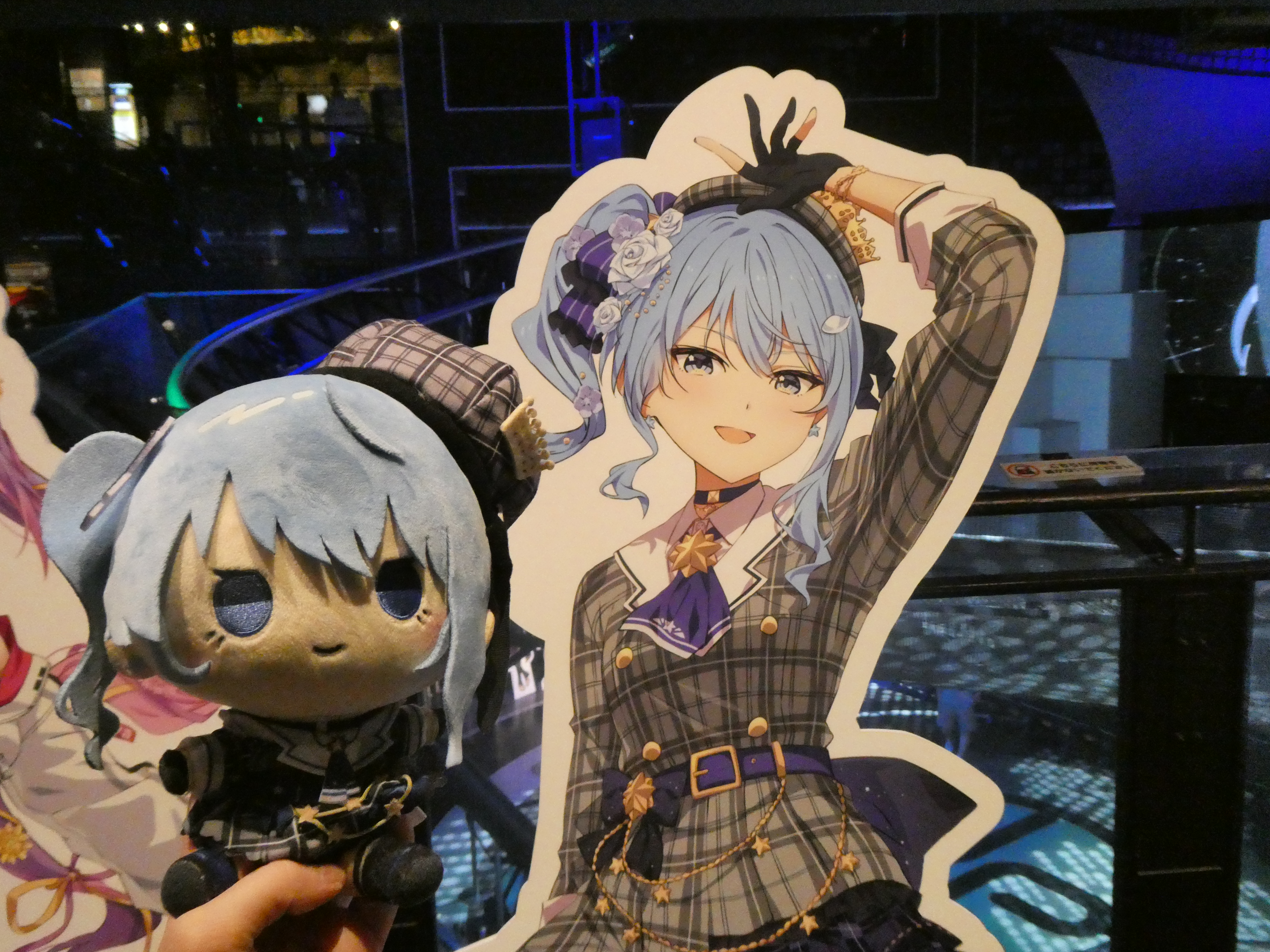 Każda vtuberka dostała jedną atrakcję, w której puszczany był jej głos, kwestie dialogowe lub piosenki. Zazwyczaj przy takiej atrakcji stał kawałek kartonu z podobizną tuby, dla której dana atrakcja jest przeznaczona. Dla Suisei był to Cosmic Traveler, czyli raczej niskiej prędkości karuzela, w której możemy kontrolować czy chcemy być wysoko czy nisko. Suisei w Cosmic Travelerze przywitała nas swoim intrem, można było krzyknąć głośno, że dziś też jest urocza. Biorąc pod uwagę ostatnie ogłoszenie, to intro było w przestarzałej już wersji - idol vtuber - a nie - virtual idol. Po intrze poleciała Bibideba i kolejka zaczęła się kręcić.