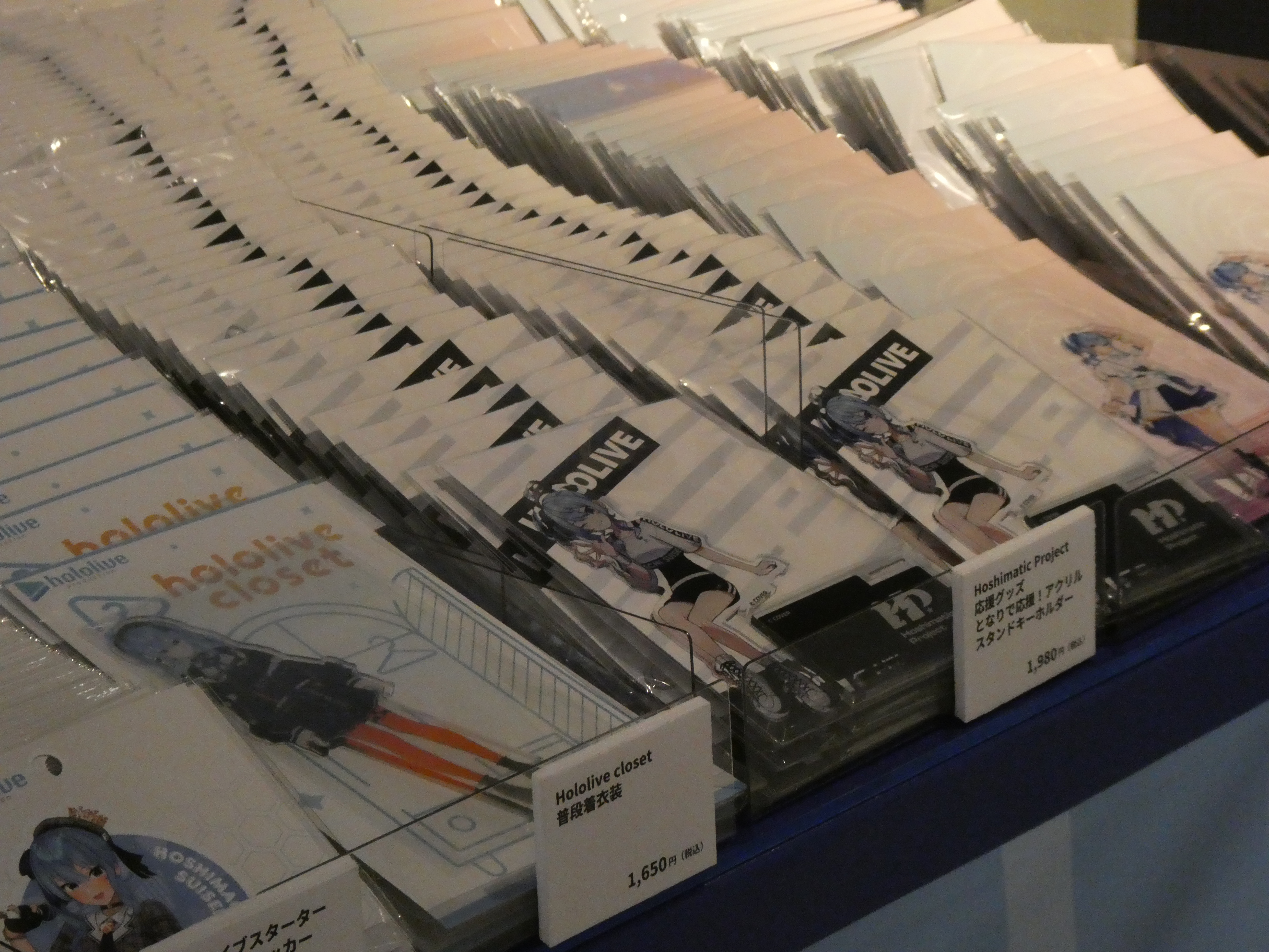 A propos wydawania pieniędzy - częścią wydarzenia był oczywiście sklep z limitowanym merczem. Sklep znajdował się w podziemiach Tokyo Dome City i jeżeli nie zapisało się na niego wcześniej - czyli pierwszego dnia nie przyszło przed 8:00 - to nie dało się w nim nic kupić. Zapisanie się polegało na tym, żeby stać w kolejce do wzięcia biletu na konkretny przedział 15-minutowy. Z takim biletem można było przyjść do sklepu o napisanej godzinie i spokojnie zrobić zakupy. Mi pierwszego dnia nie udało się zapisać na sklep, musiałem przyjść dwa dni później. Nie udało mi się, bo zapisywałem się na Suisei Popup Store w Shibuya Tsutaya. W sklepie najszybciej wyprzedały się akryle i clear file'e z Fuwamoco, bo już po jednym dniu. Psy wydają się całkiem gorącym towarem w Japonii. Olbrzymi ruch i kolejki do sklepu były spowodowane tym, że żeby wejść na teren Tokyo Dome City nie trzeba w żaden sposób zapłacić. Płatne są tylko atrakcje - passzport na cały dzień za około 6000 jpy lub jeden przejazd za 1500 jpy. Każdy może wejść na teren parku rozrywki, wziąć bilet do sklepu Hololive i przyjść później zrobić zakupy. W wypadku opisywanego wcześniej Joypolis żeby wejść trzeba było zakupić bilet na park rozrywki, cenowo wyglądały w Joypolis bilety bardzo podobnie.