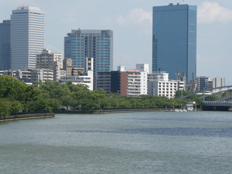 Tak zwany Gempachi Bridge na jednej z odnóg rzeki Yodo. By wykonać to zdjęcie trzeba pójść bliżej końca mostu przy zachodnim wybrzeżu i ustawić się w kierunku południa. Moje zdjęcie zostało wykonane w dzień.