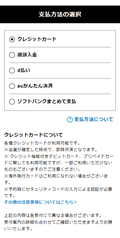 W tym wypadku wybieramy bilet elektroniczny - czyli taki, który wymagać będzie od nas posiadania aplikacji L-tike, o której tyle pisałem wyżej. Innym wariantem może być bilet odbierany w maszynie Loppi w fizycznym sklepie w Lawsonie. Wtedy warto się przyjrzeć datą odbioru biletu i sprawdzić czy możemy zrobić to samodzielnie, jeśli to nie to polecam skorzystać z czegoś to zrobi to za nas, np. z Japanrabbit lub z kolegi w Japonii. W drugim polu wybieramy płatność, karta kredytowa wydana przez Revolut działa, więc nie ma się nad czym zastanawiać dłużej. Inne metody płatności będą uciążliwe